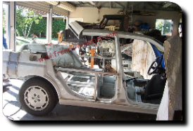 the rear roof section. The rear doors were now subjected to the to the angle grinder and air